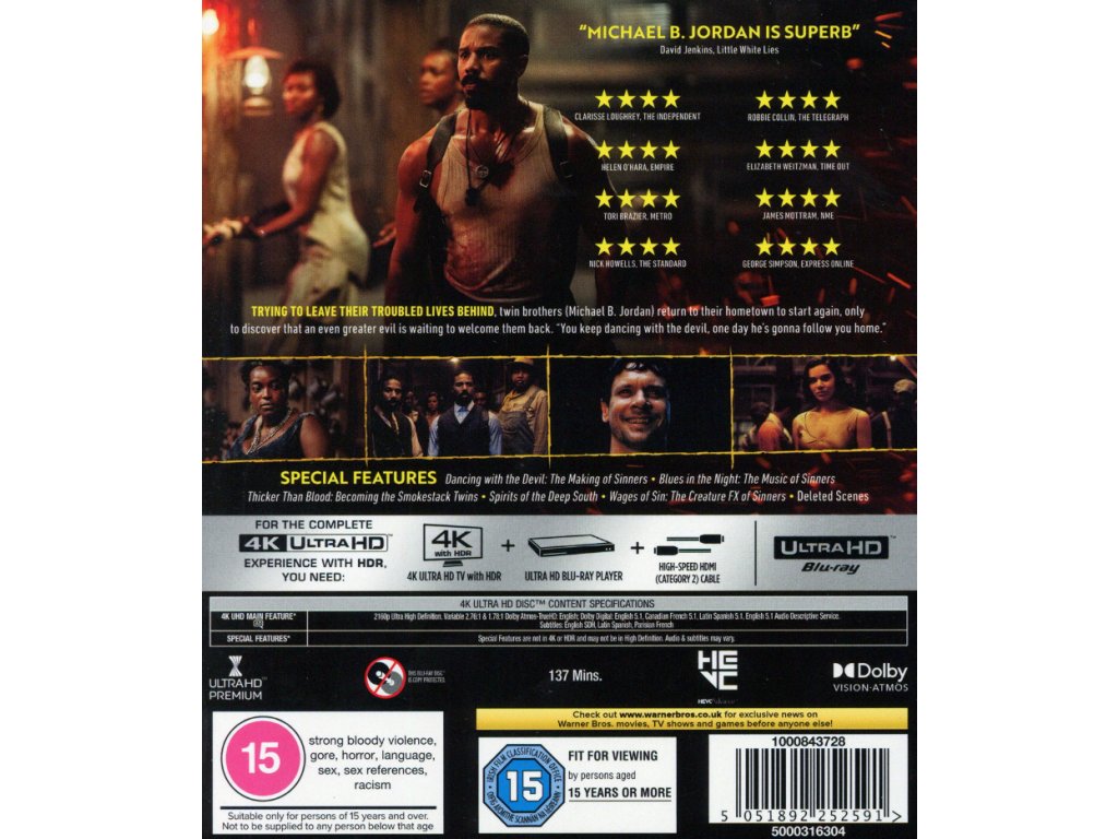 - Dancing with the Devil: The Making of Sinners – osobní zákulisní dokument Ryana Cooglera o vzniku filmu, hudbě a inspiracích (32:29)