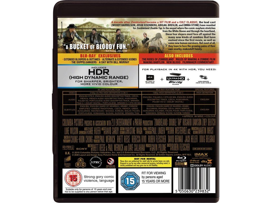 A második Zombieland Arri Alexa XT, SXT és Mini digitális fényképezőgépek szabványos kombinációjával készült, amelynek 2,8 és 3,4 k közötti felbontását 2k-ra csökkentették a végső mester számára. Az Ultra HD Blu-ray ezért fel van skálázva, és továbbra is profitálhat az új formátum előnyeiből: A felbontás növekedése mellett a jobb minőségű HEVC-tömörítés, a HDR és a WCG fényerejének és színterének bővülése, valamint e cím esetében a DTS:X pálya, amely történelmileg az első a cseh piacon, az IMAX En>